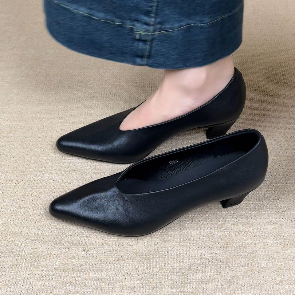 Nowe minimalistyczne codzienne retro szpilki z ostrym noskiem i dekoltem w serek nowy lekki otwór gruba podeszwa dojazdy moda małe buty na płaskiej podeszwie damskie