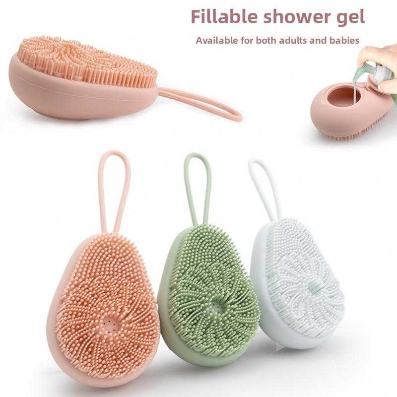 Avocado Silicone Body Wash Brush - Refillable Shower Gel Container, Skin-Friendly Bath Brush, Kids Silicone Bath Massage Brush