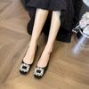 Wysoki zmysł 2025 jesień nowe francuskie czarne kwadratowe główki temperament niski obcas cyrkonie wysokie obcasy wszechstronne dojazdy damskie buty
