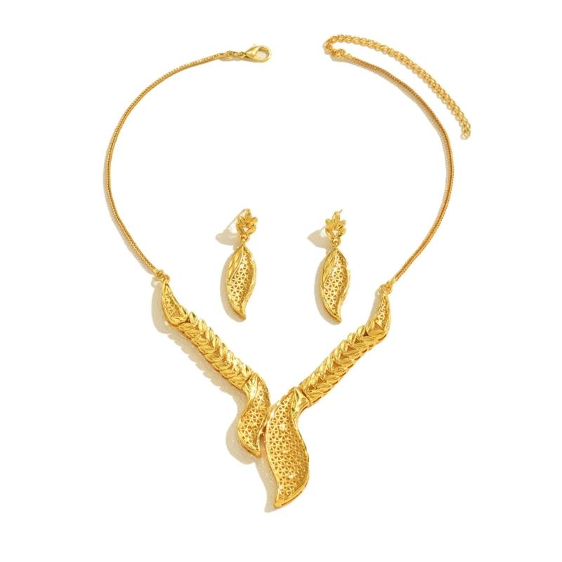 Elegant Hollow Out Leaf Design Alloy Necklace And Earrings Set Hollow Metal Leaf Jewelry For Formal Event Daily Wear