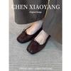 Washed cowhide~ Genuine leather ballet shoes for women to wear bows, temperament, shallow mouth flat-soled single shoes, retro grandma shoes