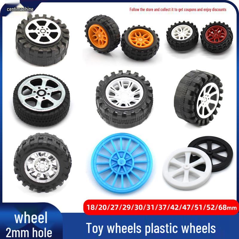 DIY Model Toy Car Wheels with 2mm Hole - Plastic Tires for Handmade Four-Wheel Drive Cars