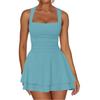 Modna damska kolorowa seksowna sukienka bez rękawów z kwadratowym dekoltem i plisowanym dołem