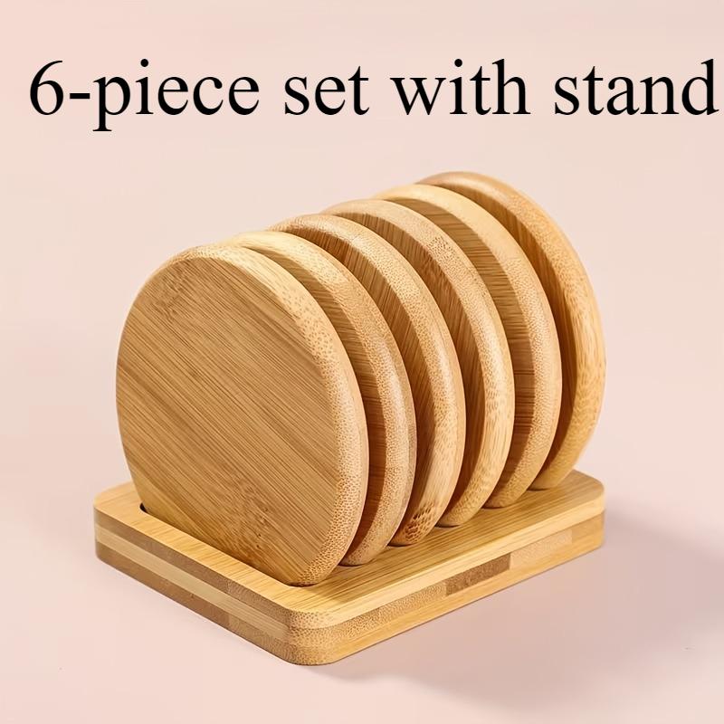 Simple Creative Bamboo Coaster Set, Round Heat Insulation Water Cup Pad, Tea Cup Holder, Eco-Friendly Table Decoration Accessory