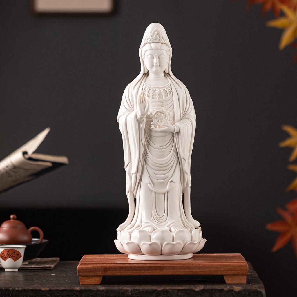 Chinese feng shui ceramic Nanhai Guanyin Bodhisattva statue standing Figure, great Compassion and mercy Guanyin Bodhisattva whit