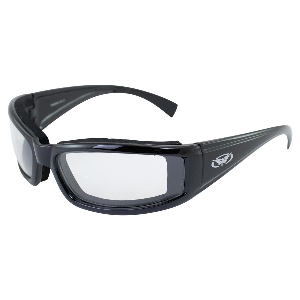Global Vision Stray Cat 24 Fotochromowe Motocyklowe Błyszczące Czarne Przezroczyste do Dymnych Okulary Przeciwsłoneczne z Automatycznym Przyciemnianiem ANSI, Oprawka, Soczewki Przeciwmgielne, Certyfikat Z87.1.