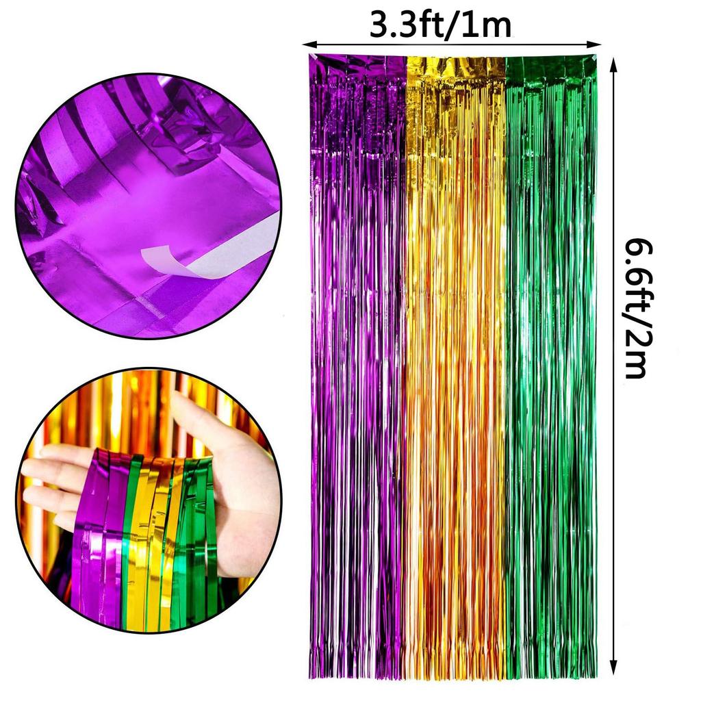 2 Pack Mardi Gras Foil Curtains Metallic Fringe Curtains Shimmer Curtain for Birthday Wedding Party Mardi Gras Party Decorations