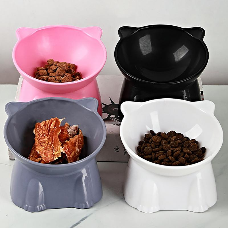 High Foot Pet Bowl Raised Tilted Cat Bowl Washable Plastic Combination Anti Tipping Drinking Water Non Slip for Cats Dogs