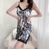 Women Sexy Lace V-neck Silk Sleepwear Suspenders Nightdresses Female Sleeveless Nightwear Sleep Nightdress For Ladies