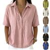 Women's Fashionable Casual Button-Down Collar Shirt, Cute Short-Sleeved V-Neck Summer Beach Vacation Top