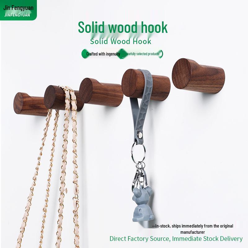Nordic Solid Wood No-Drill Coat Hook for Wall, Bathroom, Bedroom, or Behind Door.