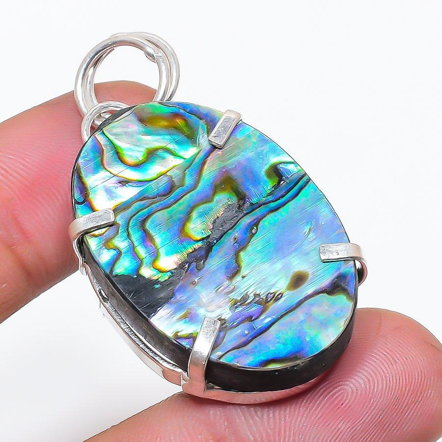Natural Abalone Shell Gemstone 925 Sterling Silver Jewelry Pendant 1.85" AP-14257