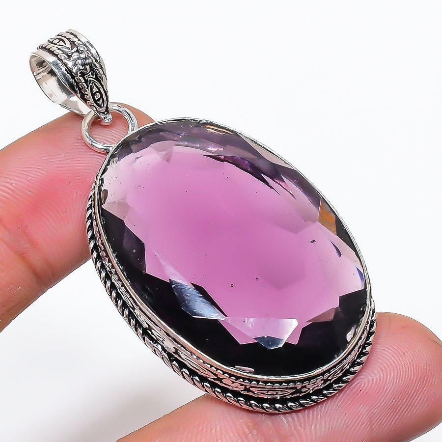 Natural Amethyst Gemstone 925 Sterling Silver Jewelry Pendant 2.29" AP-14258