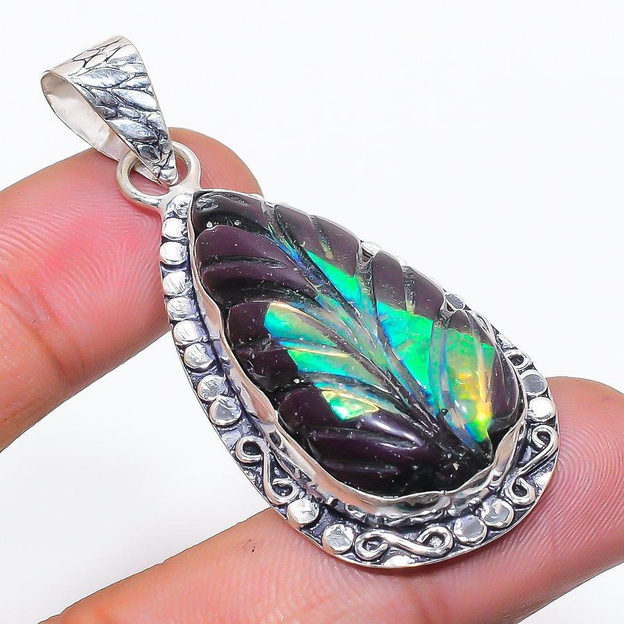 Natural Australian Opal Doublet 925 Sterling Silver Jewelry Pendant 2.36" AP-14238