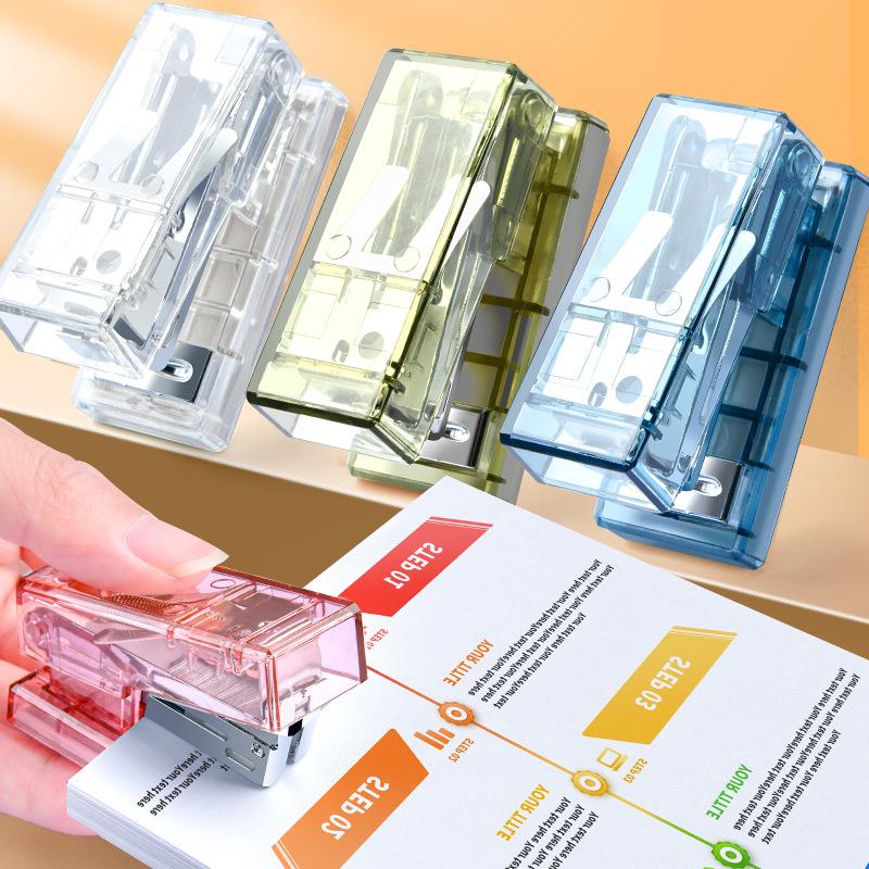 Clear Mini Stapler - Cute Macaron Solid Color Stapler for Students