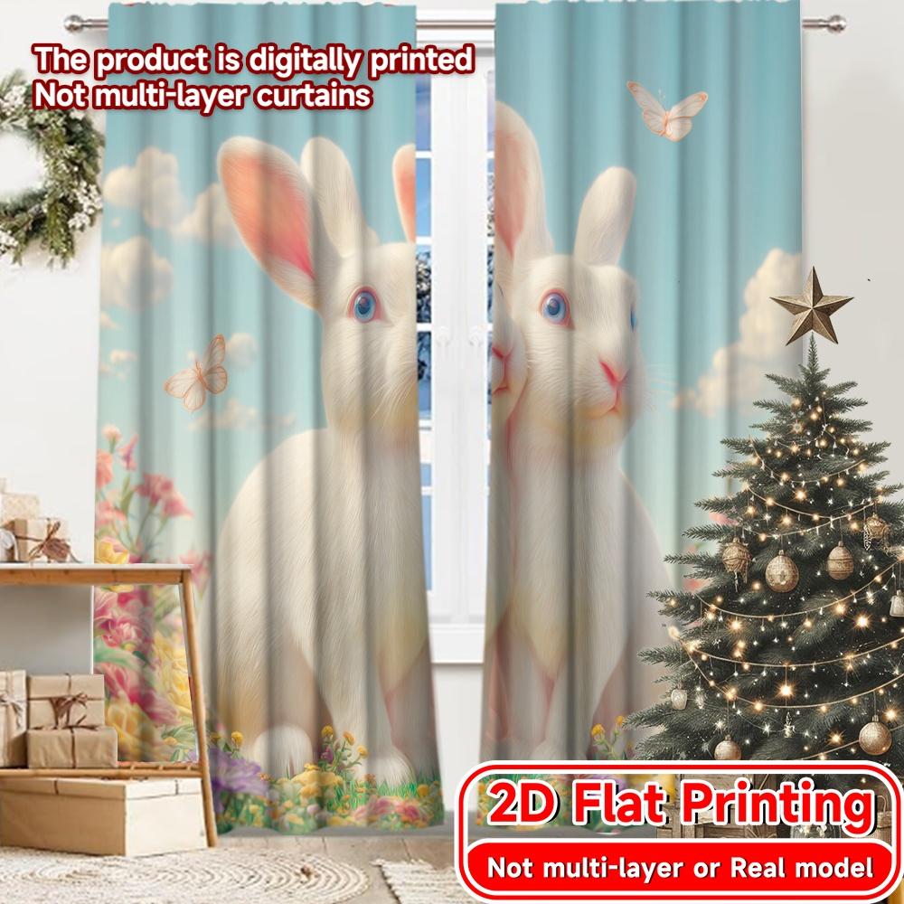 Set Of 2 Flat Printing Curtains Without Rod Easter Bunnies Bloom Festival Chic Print Durable Polyester Curtain