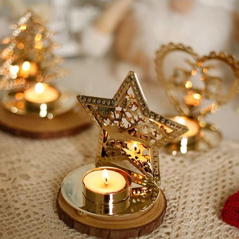 Nordic Hollowed Candle Holder Iron Art Gold Christmas Candlestick Ornament Exquisite Iron Candle Stand Candlelight Dinner