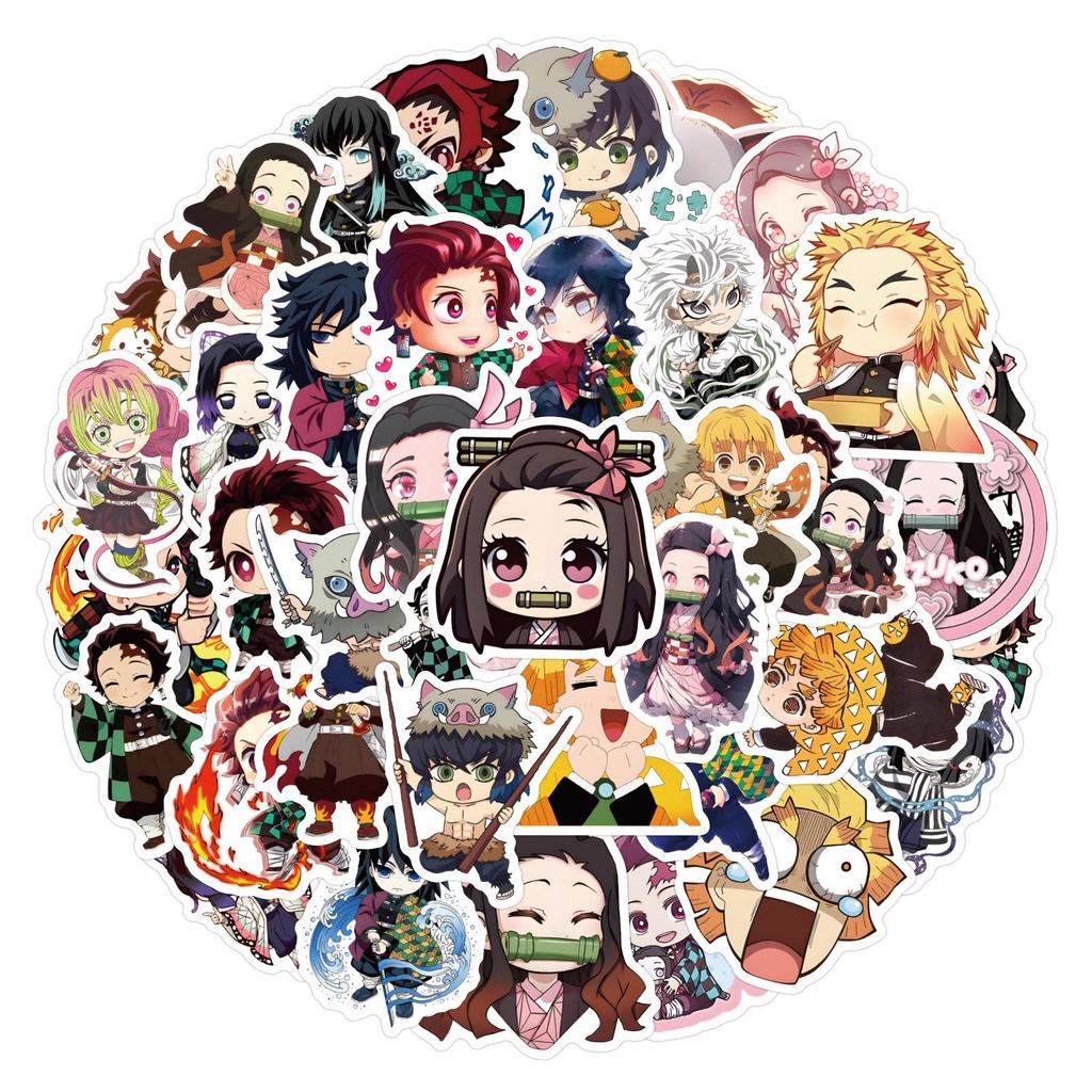 50pcs Chibi Demon Slayer Anime Stickers for Notebooks & Luggage - DIY Cartoon Decorations