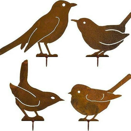 Rustic Metal Bird Silhouette Set: 4-Piece Outdoor Garden Courtyard Decoration