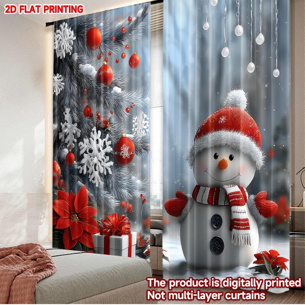 Flat Printing Christmas Hot Party Curtains Snowman Decorations Digital Printed Polyester Drapes Festive Curtain Set Of 2 Made Washable