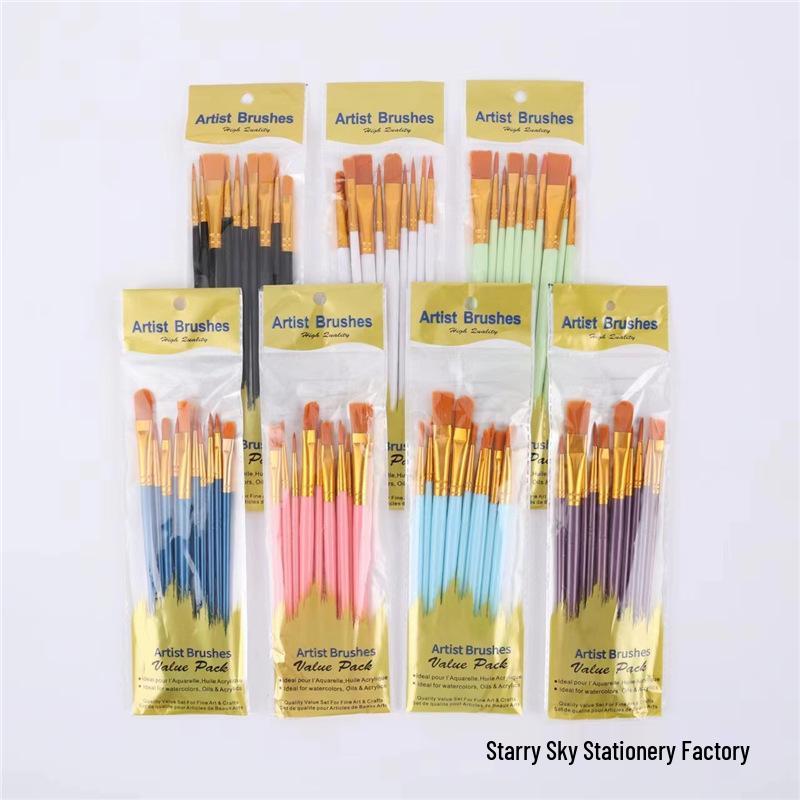 10-Piece Nylon Hair Paint Brush Set for Art Students - Watercolor, Gouache & Oil Painting