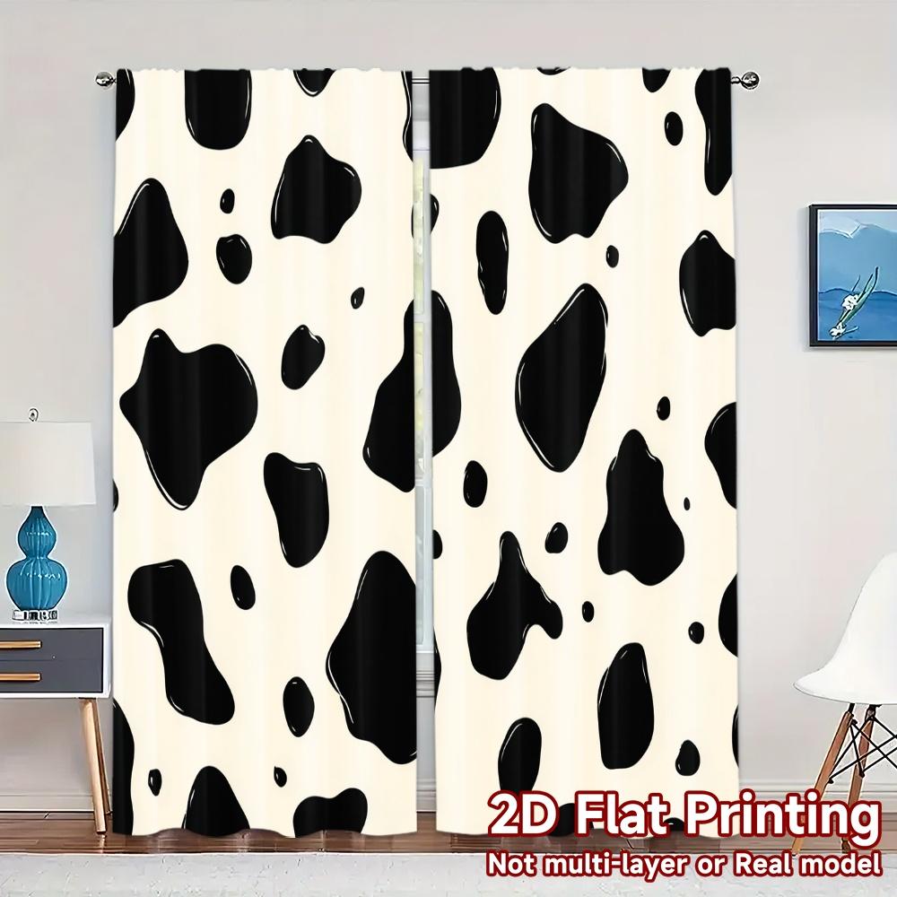 Set Of 2 Flat Printing Jit Curtains Without Rod Cowprint Popular Polyester Outdoor Curtain With Sheer