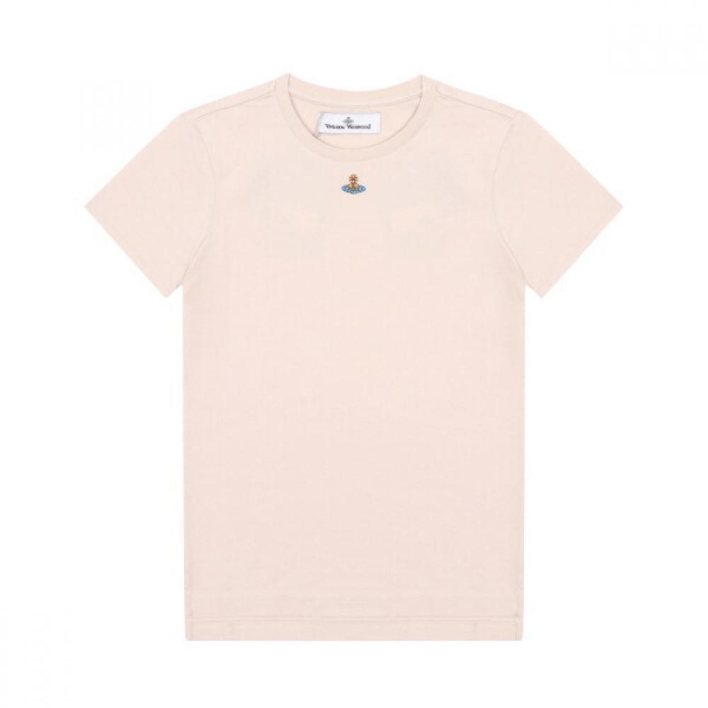 The Vivienne Westwood 3G010017 J001M C403 ORB Logo Peru Women's Short Sleeve T-shirt is made from soft 100% cotton fabric. This t-shirt features a thicker feel and showcases the ORB logo, characterized by a casual yet sophisticated design. It is suitable for the spring and summer seasons and can be styled as standalone or layered wear.
