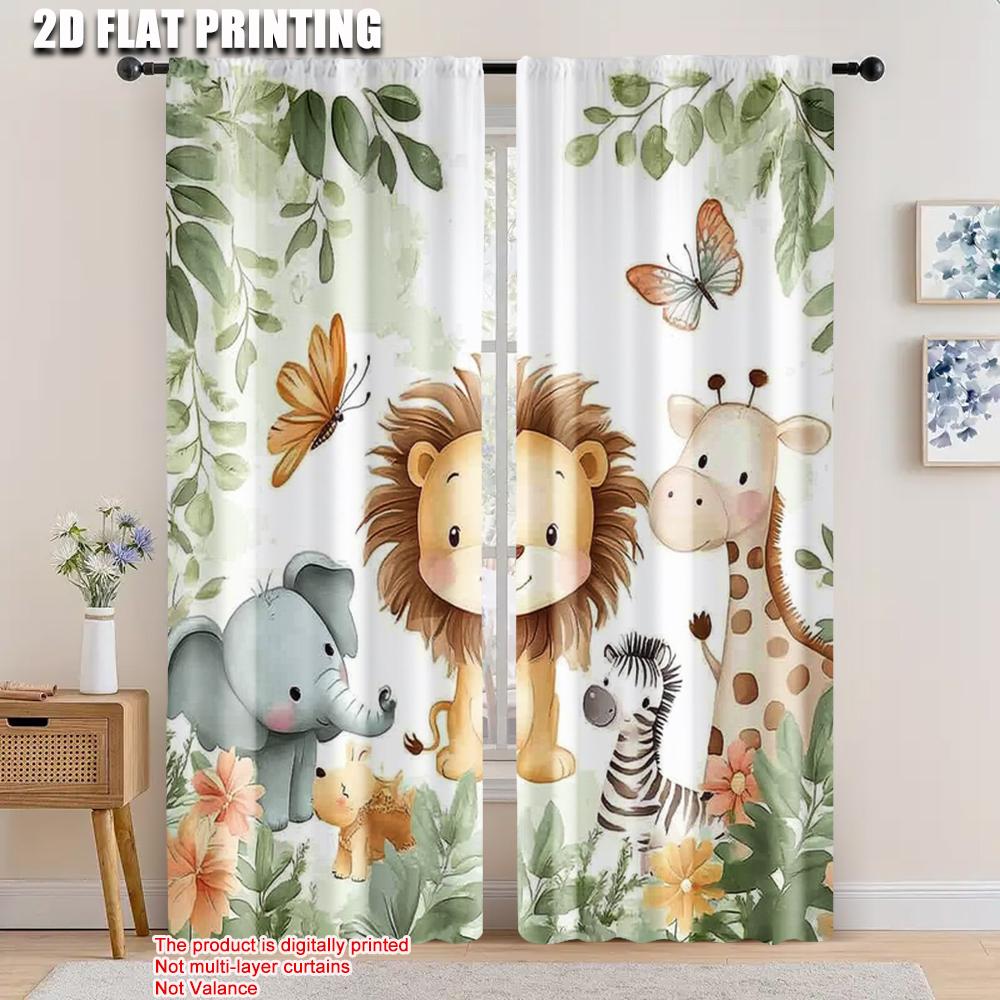 Light Filtering Spring Summer Curtains Cute Lion Elephant Giraffe Zebra Sheer Versatile Fabric Room Decor Perfect Curtain Set Of 2 Made Polyester