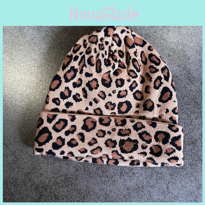 Fall Winter Knit Hat For Women With Warm Leopard Pattern Outdoor Beanie For Cold Weather