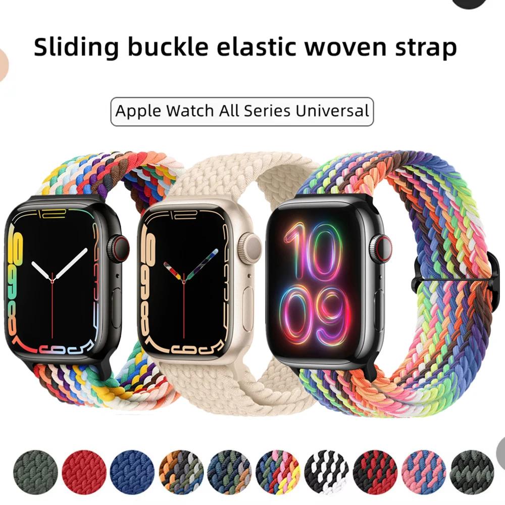 Braided Loop Strap For Apple Watch Band 42/46mm 45/41mm 38/40mm 44mm 49mm Nylon Solo Bracelet iWatch series 10 9 se 8 7 6 Ultra2