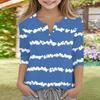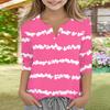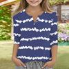 Print Tops For Youth Girls V Neck Button 3/4 Sleeves T-Shirts Trendy Tops Outfit Tees