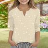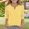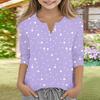 Print Tops For Youth Girls V Neck Button 3/4 Sleeves T-Shirts Trendy Tops Outfit Tees