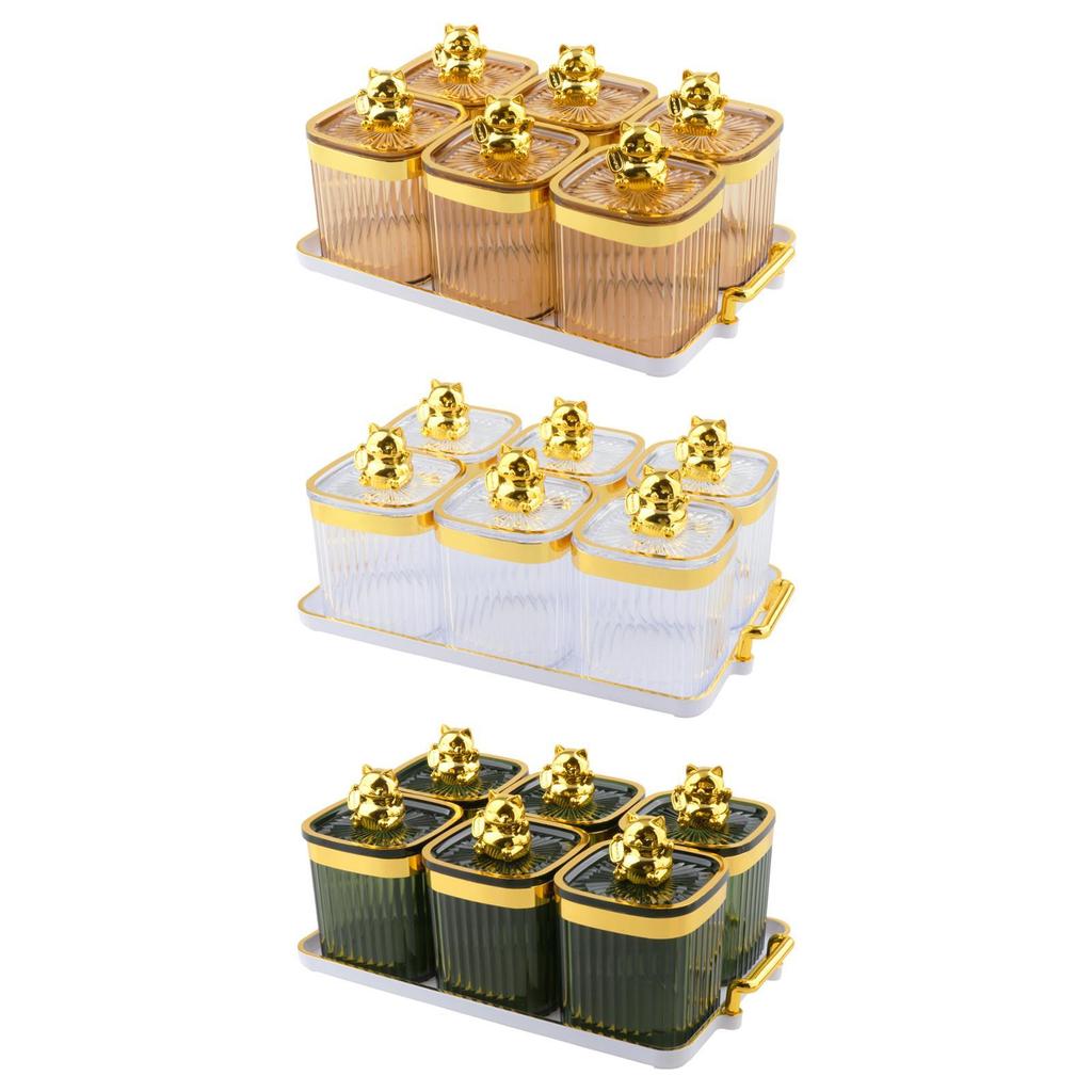 Sugar Jars 6 Grids Multifunctional Dry Fruit Jars with Lid Food Storage Container for Kitchen Party Home Dining Room Fruit
