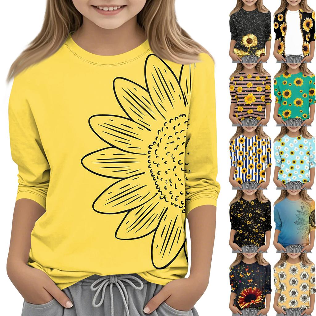 Children's Printed Round Neck Seven Quarter Sleeve Casual T-shirt