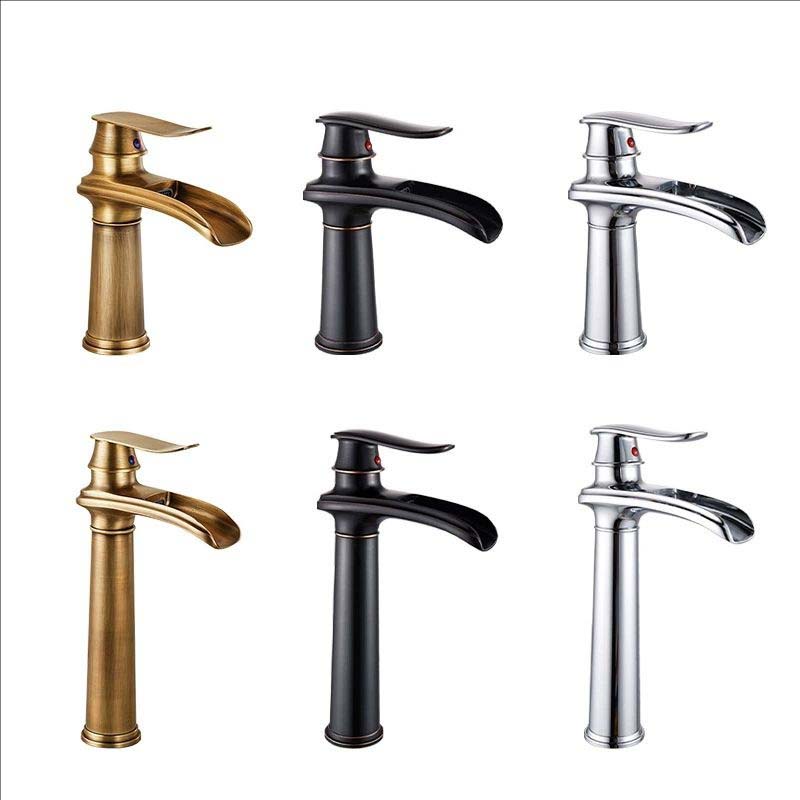 Chromowana bateria umywalkowa Mosiądz Czarny Retro wodospadowa bateria umywalkowa Europejski styl Mieszacze ciepłej i zimnej wody bateria