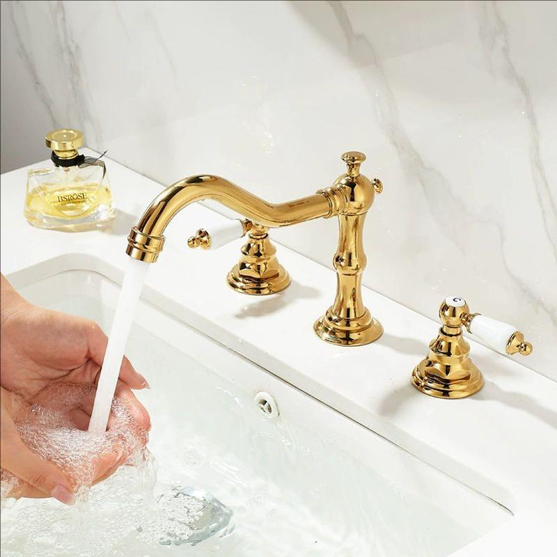 Złoty Chrom Mosiądz Bateria Umywalkowa Mieszak Bateria Kuchenna Antyczna Czarna Podwójne Uchwyty 3 otwory Bateria Wannowa