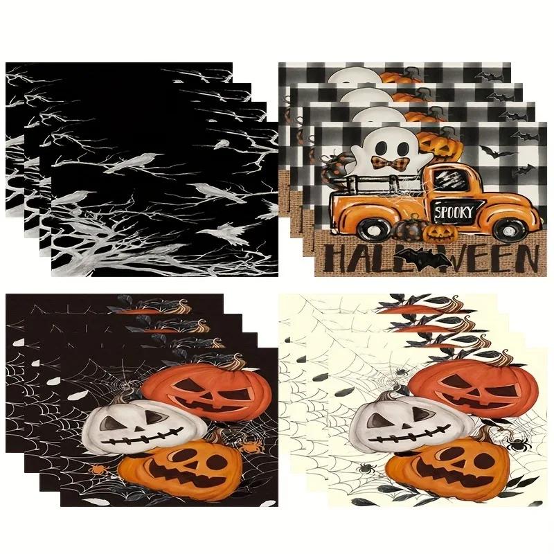 1PC Halloween Pumpkin Print Placemats Machine Washable Table Mat Linen Placemat for Kitchen Dining Table Decoration