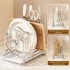 Multi-layer Pot Lid Rack Stainless Steel Rustproof Chopping Board Organizer Space Saving with Drainage Tray Cutting Board Holder