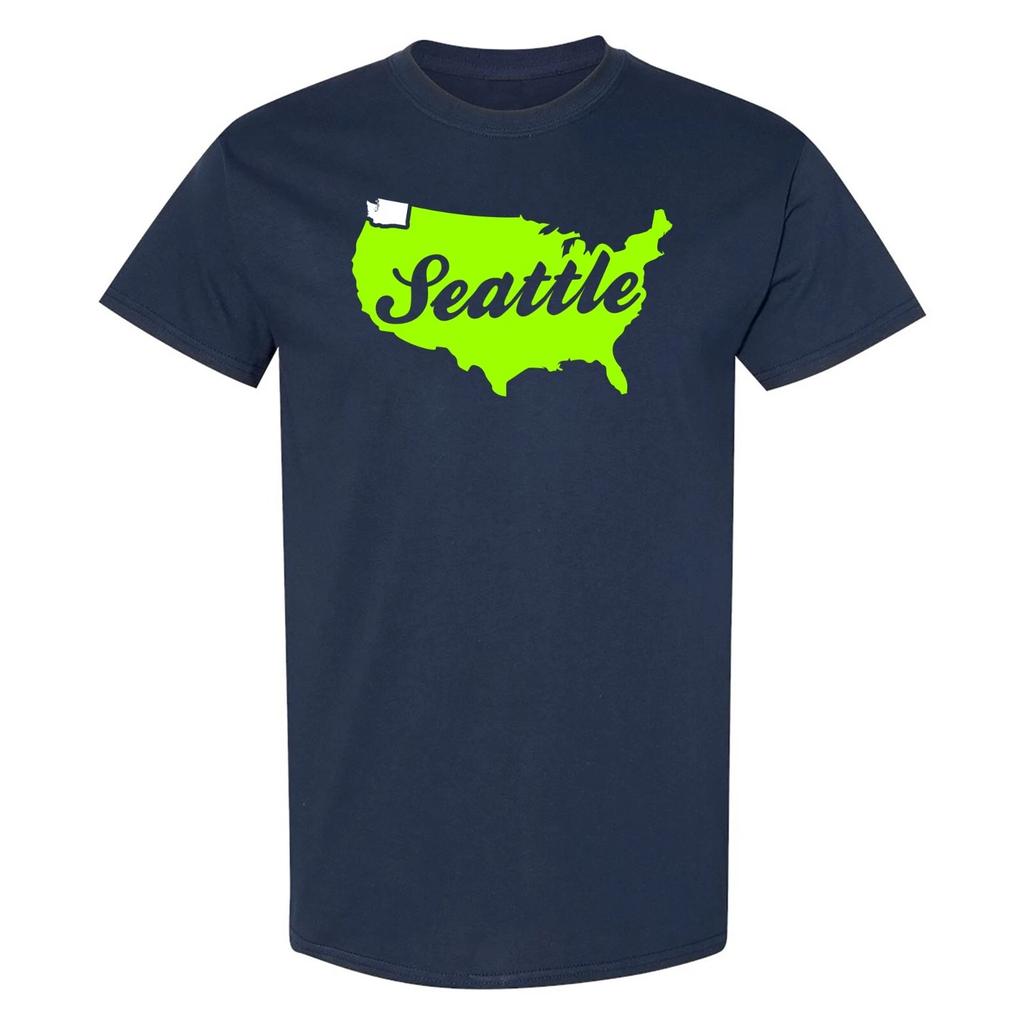 Seattle USA Script - Football Team Colors Sports T-Shirt - Navy