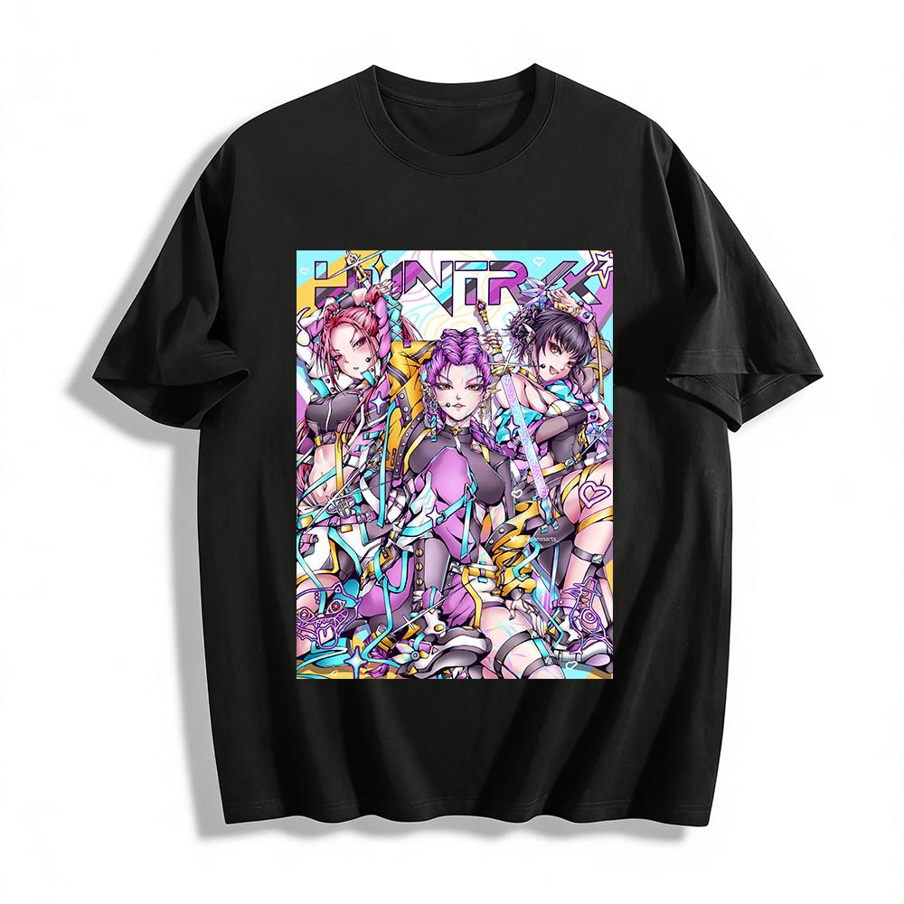 Cyber Hunter Girl Group Print T-shirt Street Trendy Anime Style Loose Casual Top For Men Women Pure cotton T-shirt