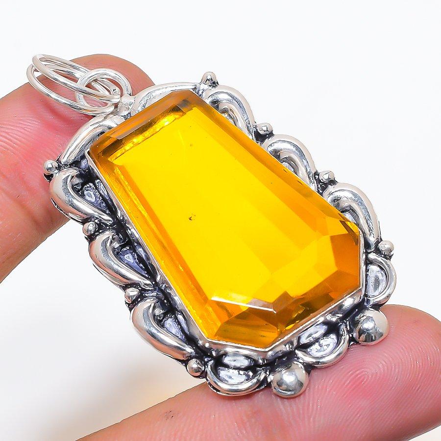 Natural Citrine Gemstone Handmade 925 Sterling Silver Jewelry Pendant 2.56" AP-14219