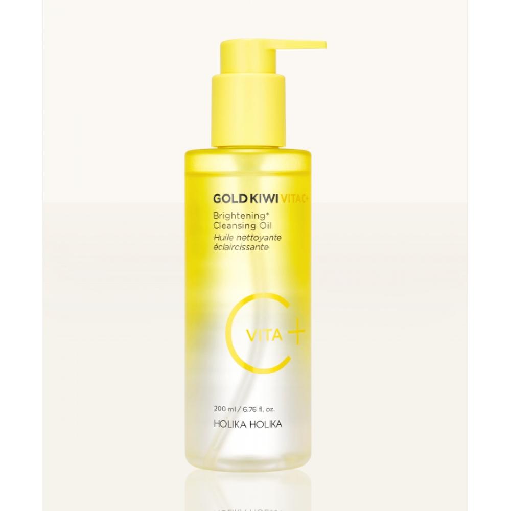 HOLIKAHOLIKA Gold Kiwi Vita C+ Brightening Cleansing Oil 200ml effectively removes makeup and impurities while providing brightness care and moisturizing effects. This product contains 1,000ppm of Gold Kiwi Seed Oil and 2,000ppb of Kiwi Extract, which can improve skin tone and provide brightening effects. A variety of vitamin and botanical oils help protect the skin and improve texture.