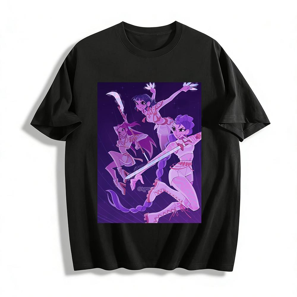 Vintage Anime Style Cool Female Warrior Print Top Trendy ACG Peripheral Loose Casual T-Shirt Pure cotton T-shirt