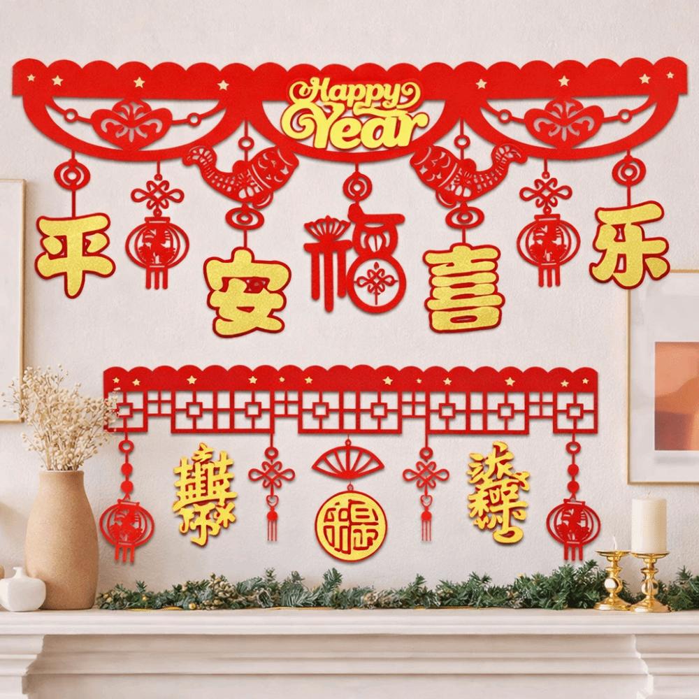 Decorative Chinese New Year Dragon Banners Felt Spring Festival Banner Door Curtain Shopping Mall