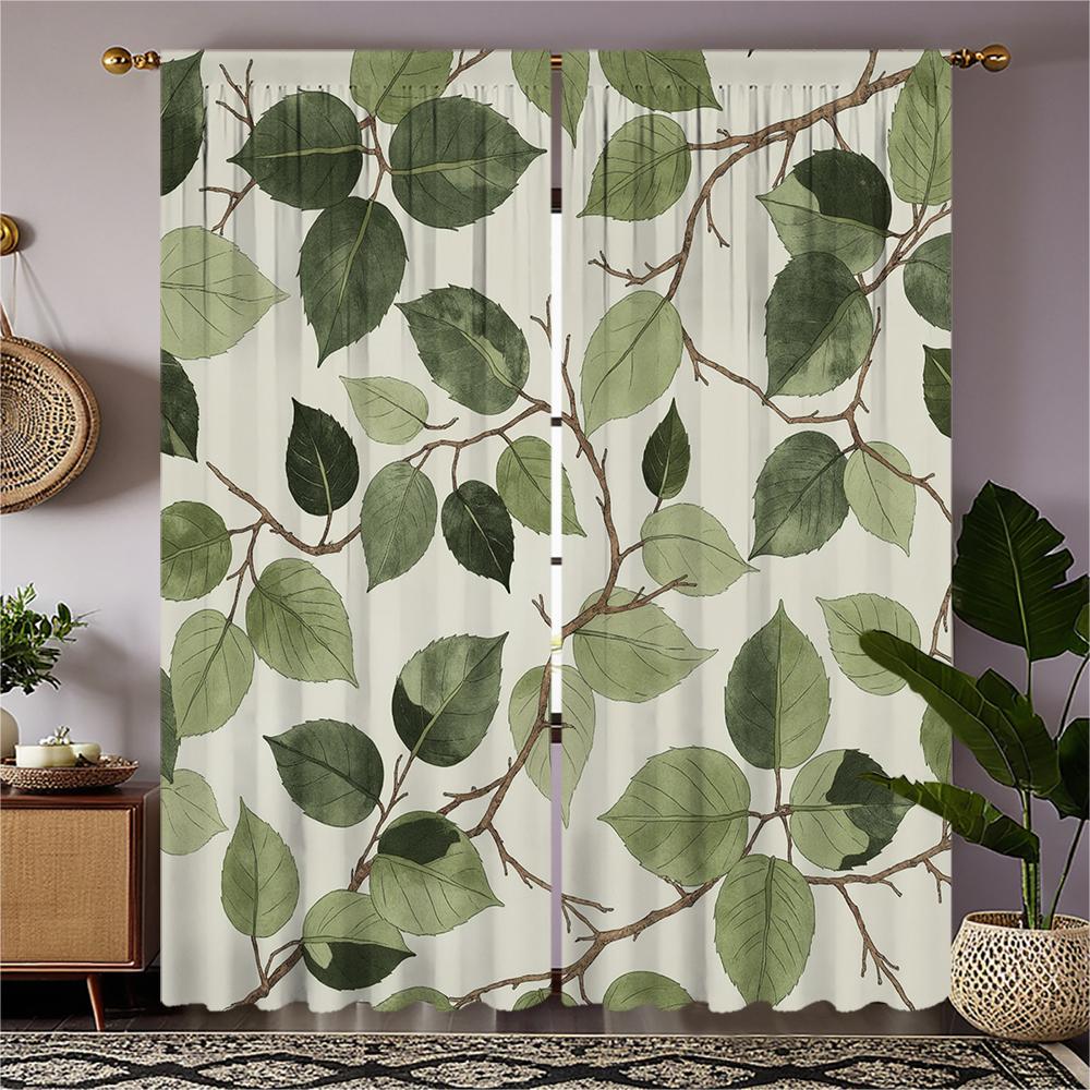 Piece Set High Definition Digital Printed Curtaingreen Leaf Branch Pattern Curtain Cross Border Commerce Designhome Curtains Made Of Polyester