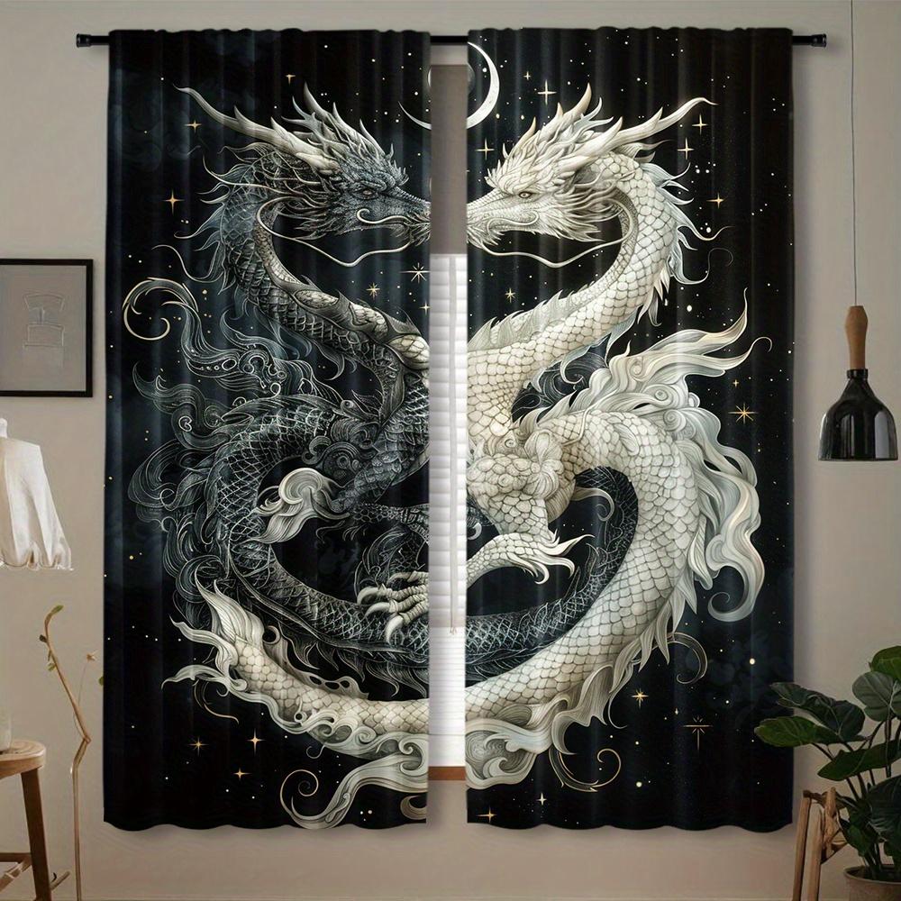 Set Of 2 Tai Chi Dragon Print Curtain Home Decor Window Bedroom Office Kitchen Living Room Study Curtains Made Polyester Treatment