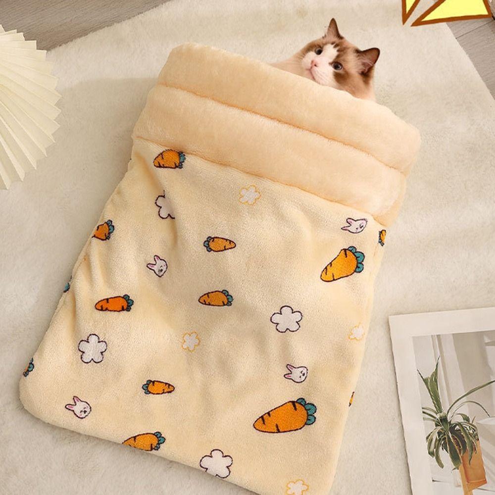 Cute Cat Sleeping Bag Thickened Cartoon Cat Nest Mat Winter Warm Pocket Type Kitten Quilt Bed Pet Supplies