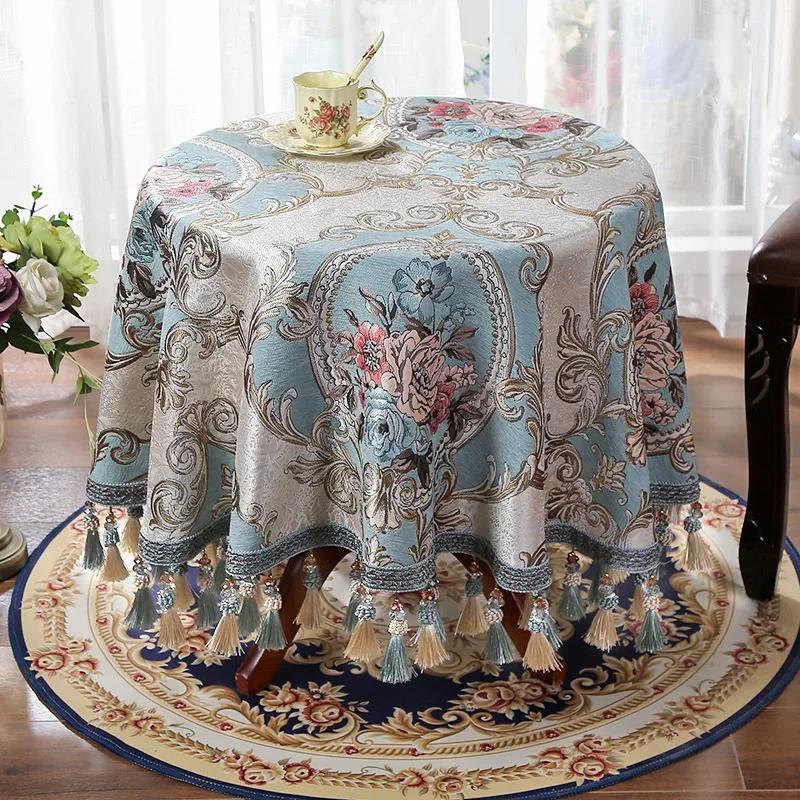 Wysokiej jakości okrągły obrus w kwiaty salon jadalnia domowa tkanina świeży retro luksusowe frędzle obrus do jadalni amerykański