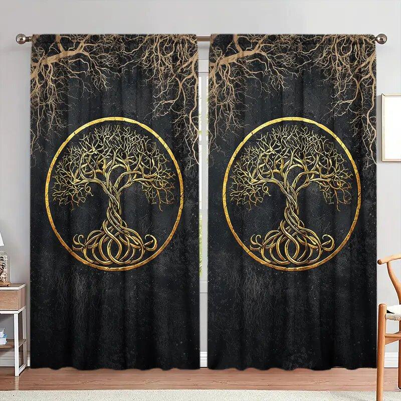 Life Tree Totem Printed Curtains Christmas Decorations Bedroom Living Room Home Decoration Curtain Made Of Polyester Washable Ready