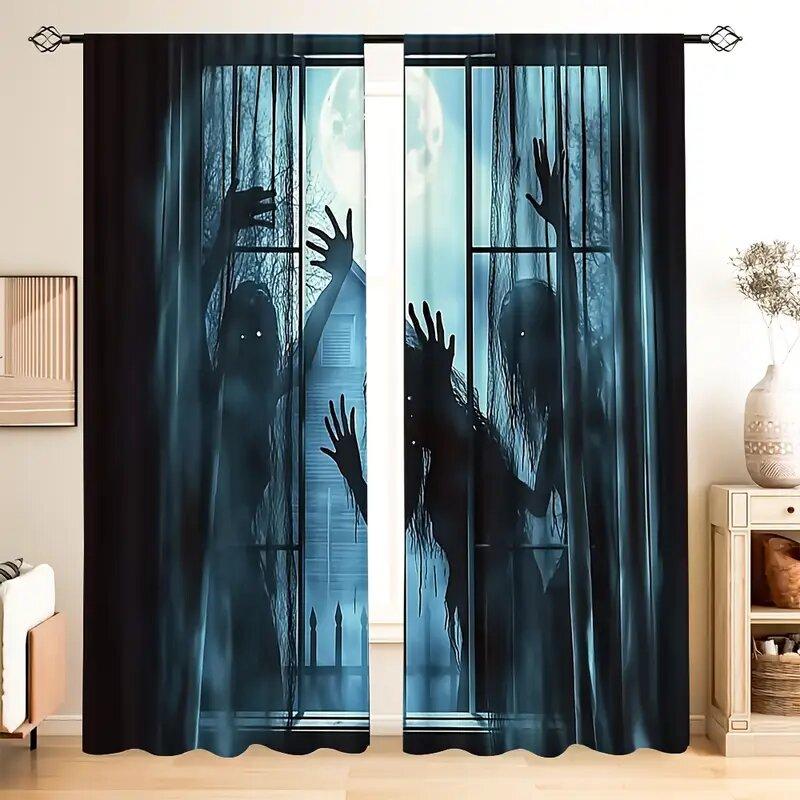 Halloween Scary Ghost Monster Pattern Printed Curtains Window Decorations Home Room Curtain Made Of Polyester Washable